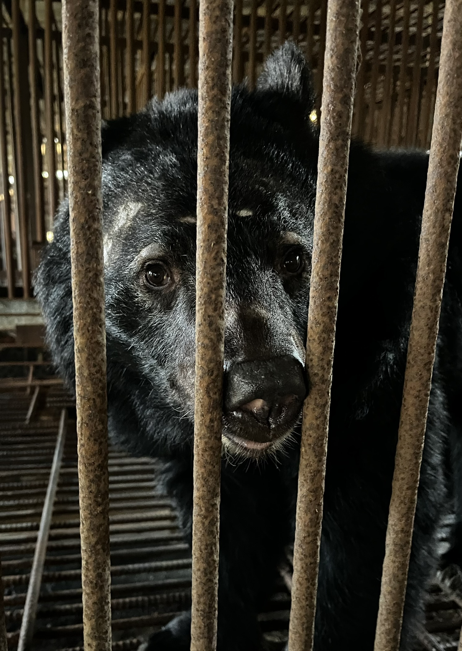 Deze beren zitten jarenlang opgesloten in extreem kleine kooien, waar op pijnlijke wijze gal wordt afgenomen — een praktijk die ernstig en langdurig dierenleed veroorzaakt.
