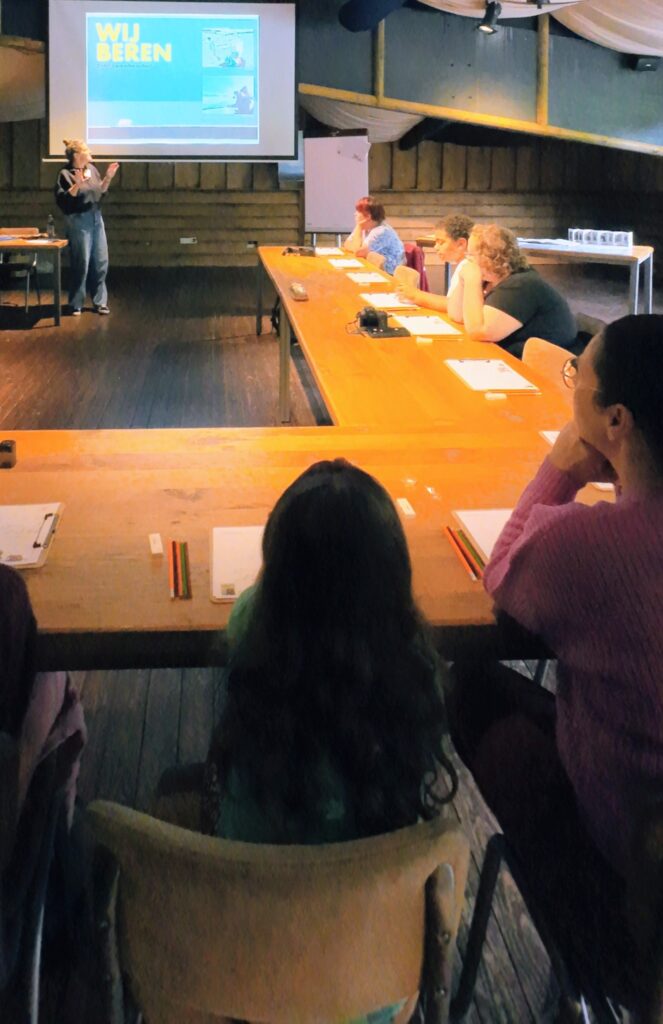 Tijdens een workshop gaf illustrator Marieke ten Berge deelnemers een inkijkje in haar werk als beer-tekenaar. Ze deelde haar persoonlijke reis, gaf inspirerende voorbeelden en liet verschillende tekentechnieken zien.