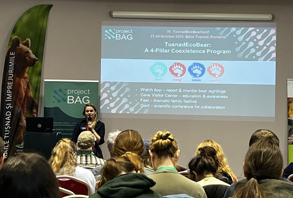 The 4th TusnadEcoBear Conference, held in October 2025 in Romania, brought together experts from 17 countries to share knowledge on human–large carnivore coexistence, with a focus on European brown bears. Participants discussed practical approaches to mitigating conflicts in human-dominated landscapes, examined effective and ineffective management practices, and emphasized the importance of preparing for emerging challenges such as climate change. The conference reaffirmed its value as a unique platform that links scientific research, practical field experience, and community involvement, highlighting how local action supported by international cooperation can advance bear conservation.